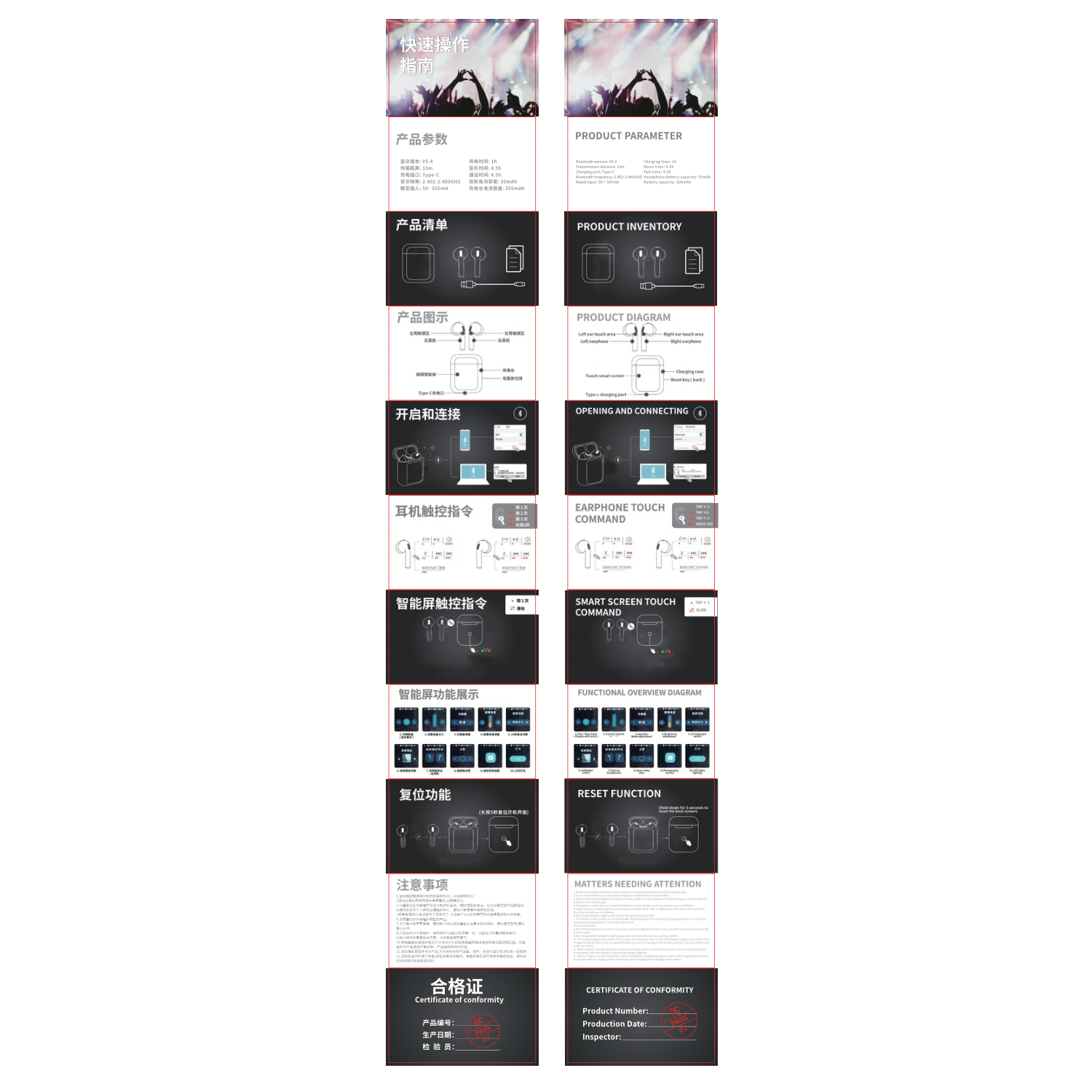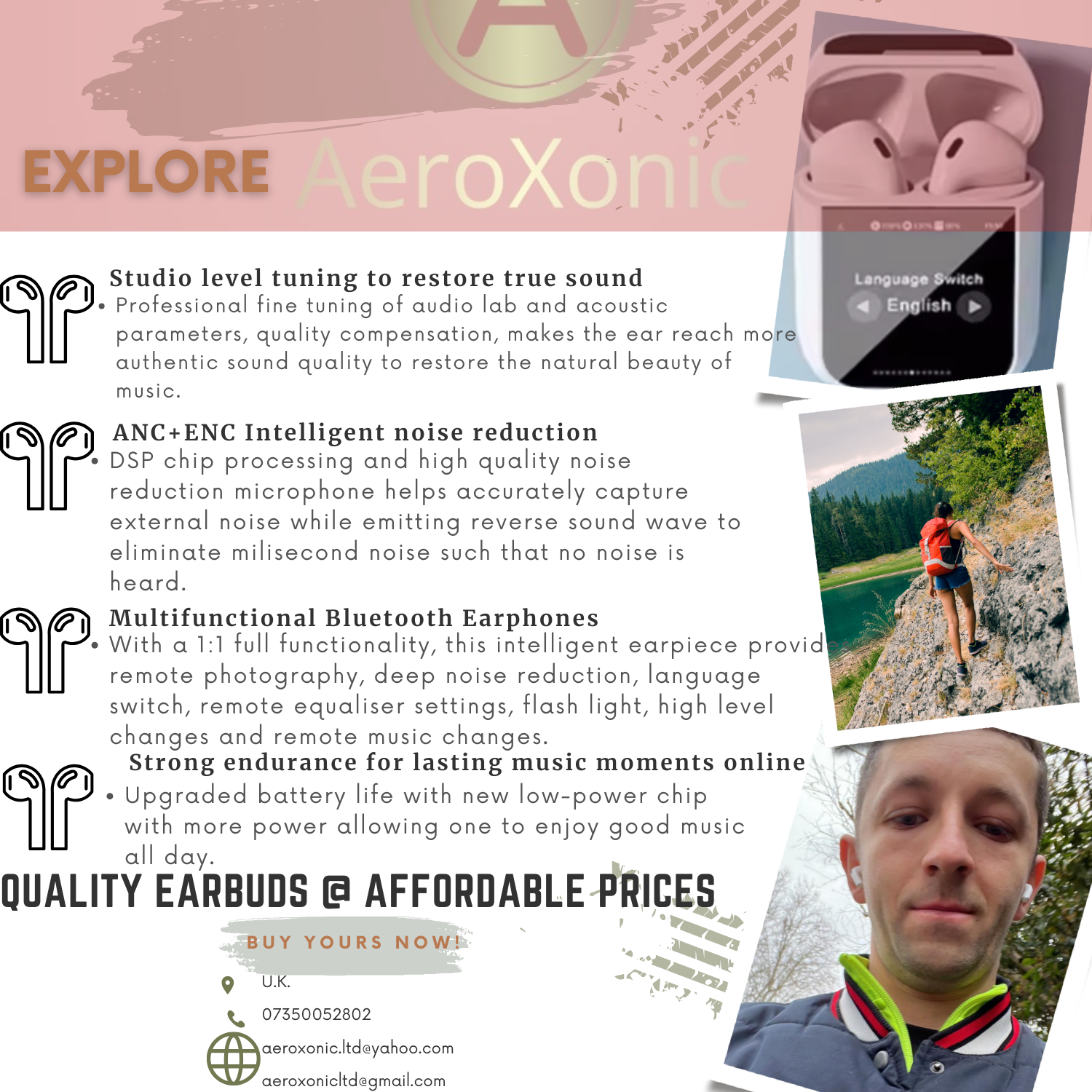 A2 PRO, Wireless Earbud, 5.4 Bluetooth Headphone with Stereo Sound, Environmental & Active Noise Cancellation, USB-C Charging, Touch Smart Screen, 300mAh High Capacity Battery, IPX5